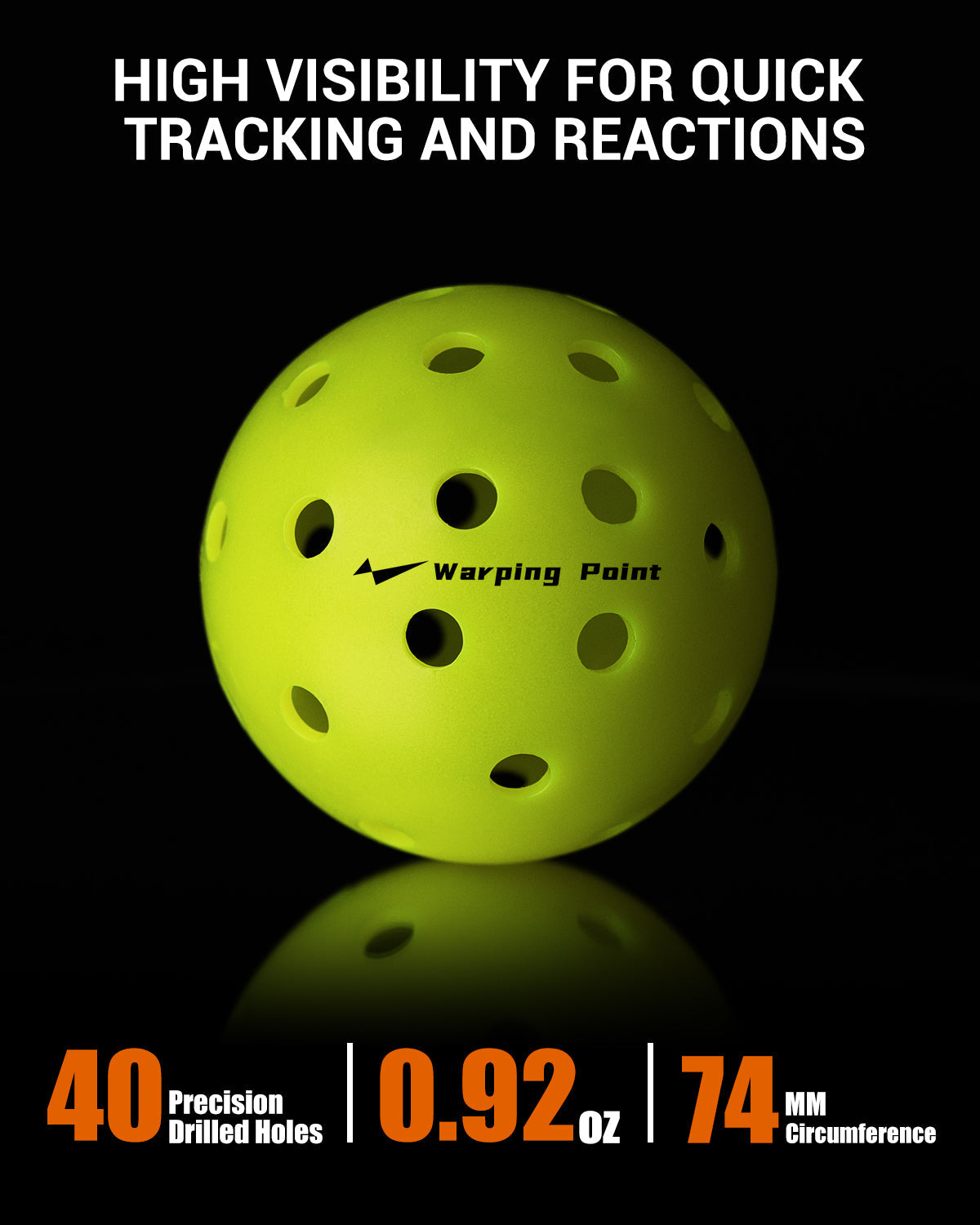 The neon yellow color of pickleball ball provides excellent visibility, making it easy to track in both bright and dim lighting conditions. This ensures quick reactions on each shot and easy ball retrieval after the game.