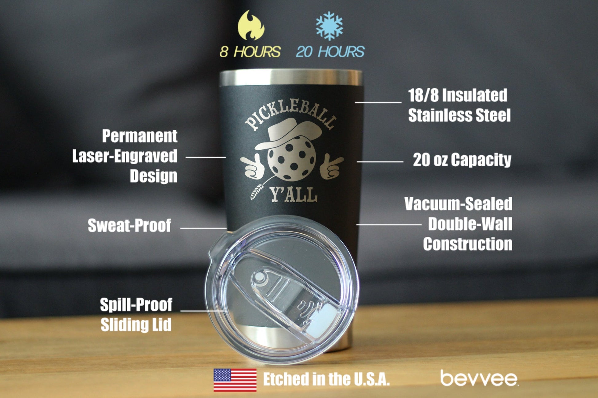Funny Pickleball Gifts Insulated Coffee Tumbler with Sliding Lid Pickleball Y'all 20oz Stainless Steel Tumbler