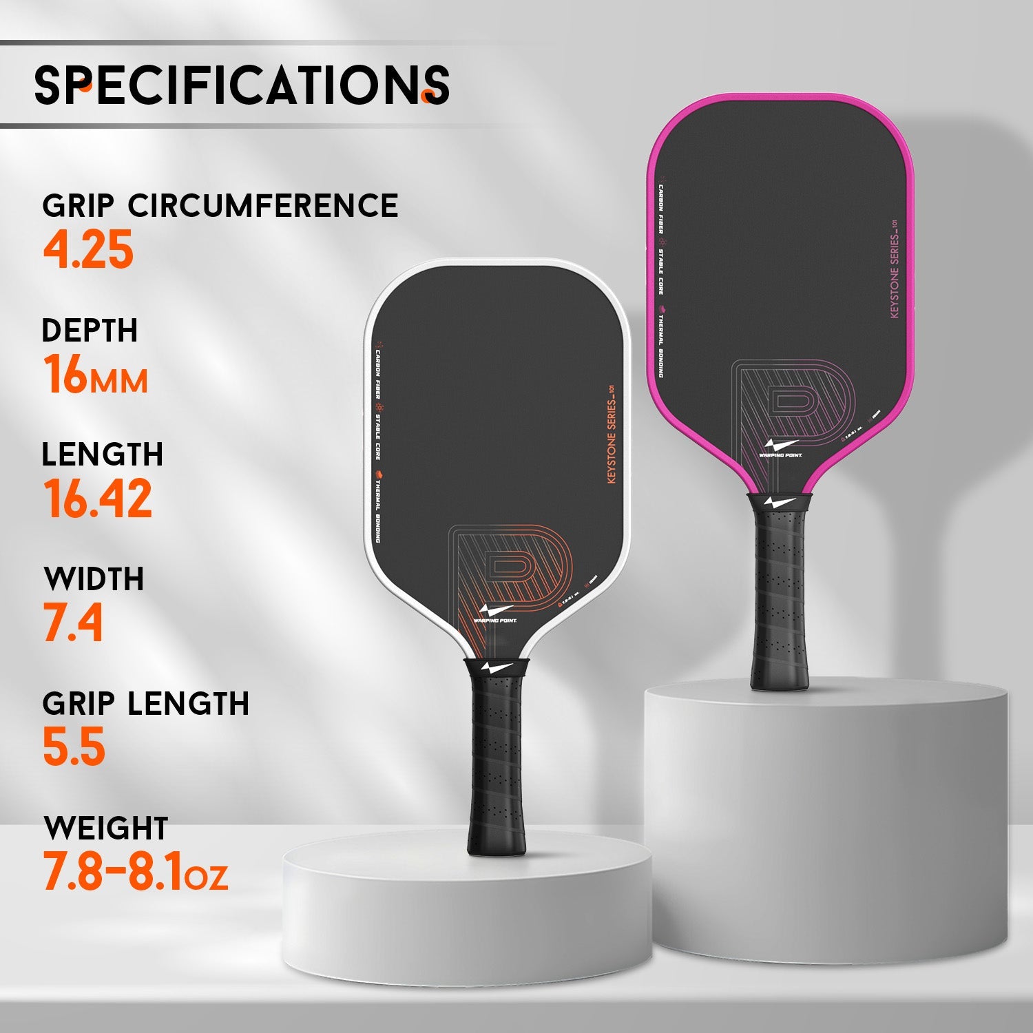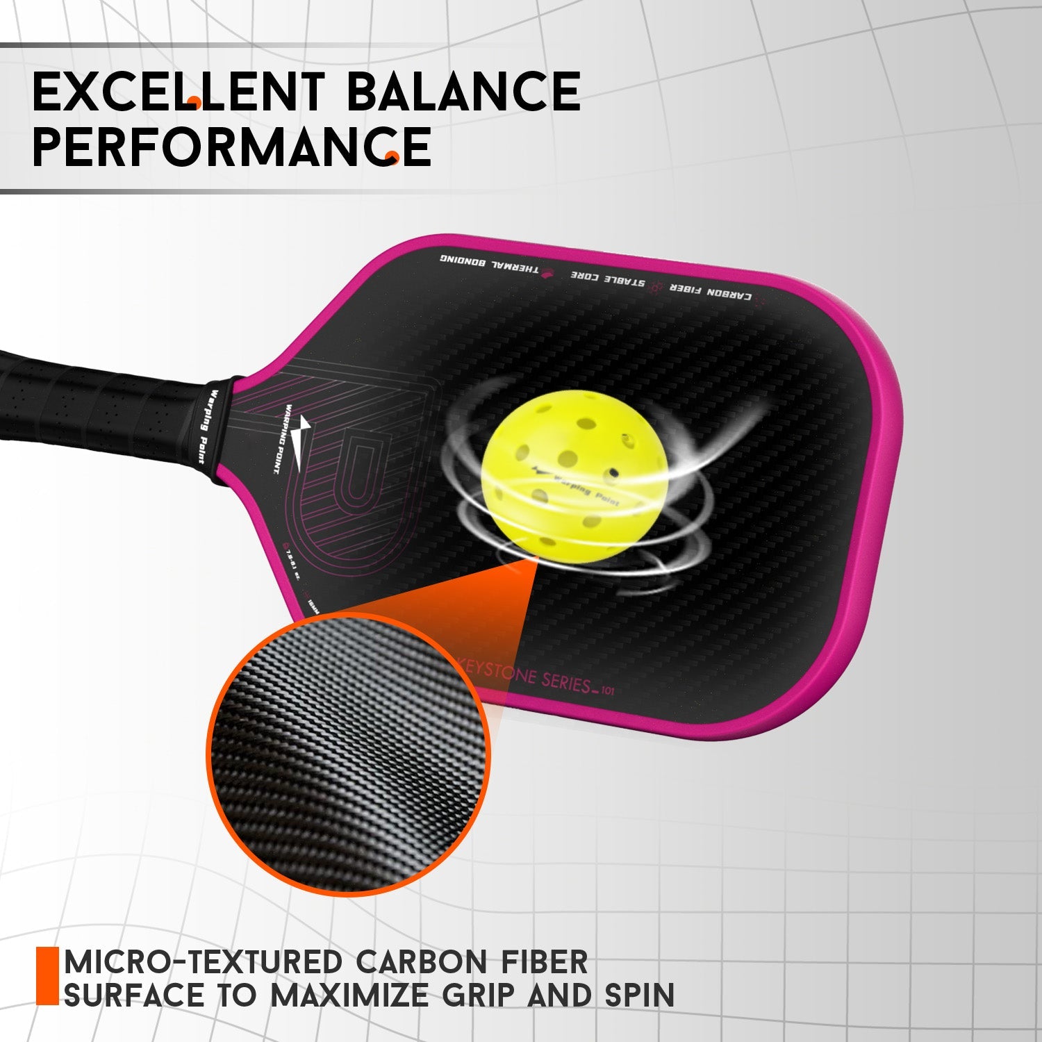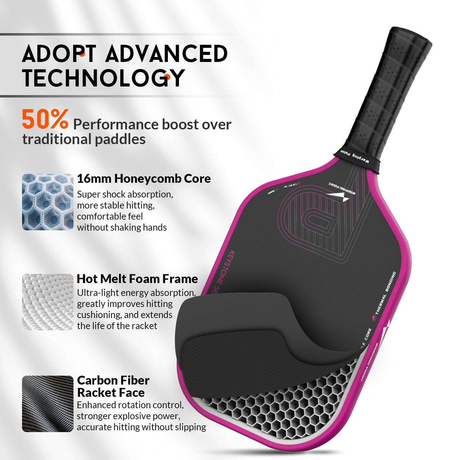 The Keystone Pink paddle delivers perfect balance and tournament-ready performance, wrapped in a bold, eye-catching pink design. Its precision-engineered core offers exceptional control, while the micro-textured surface maximizes spin and grip for deadly accurate shots. The vibrant pink isn’t just stylish, it’s a statement of confidence on the court. Whether you’re placing soft dinks or ripping powerful drives, this paddle blends finesse and power in a sleek, high-performance package.