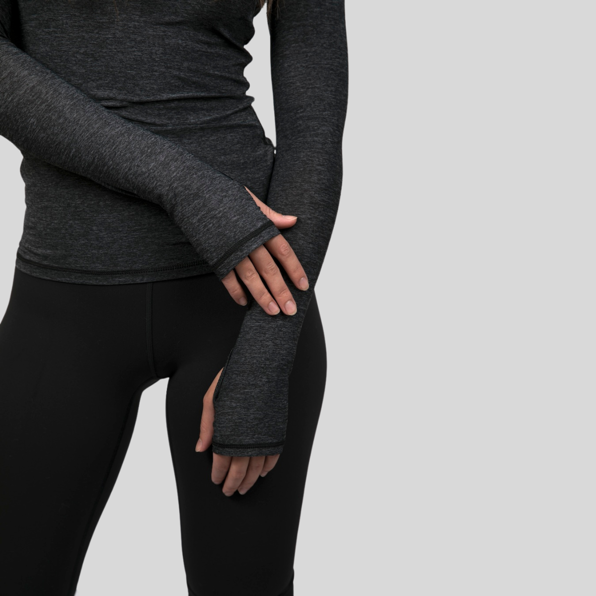- Long Sleeves + Thumbholes. Extra, adjustable protection for hands and palms.