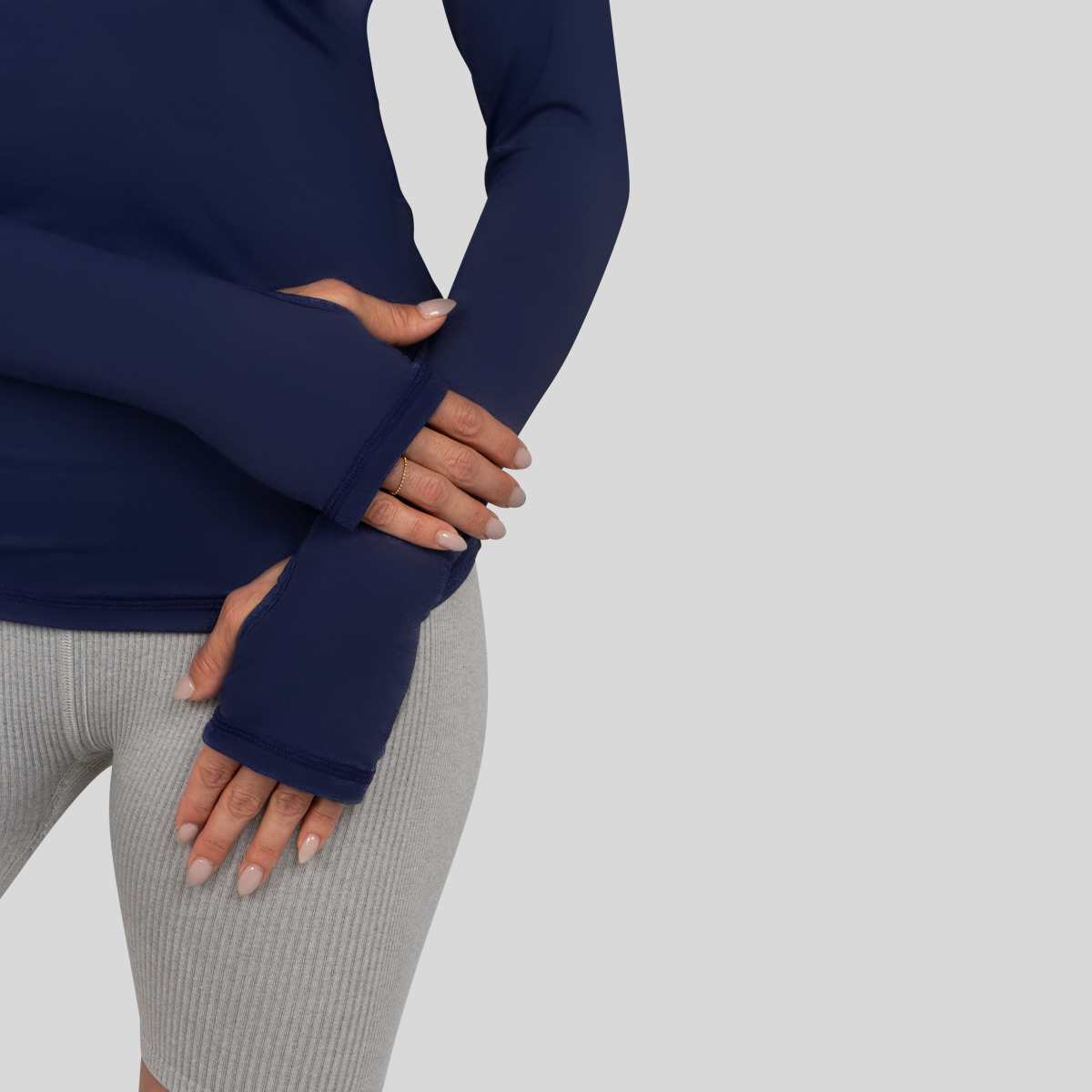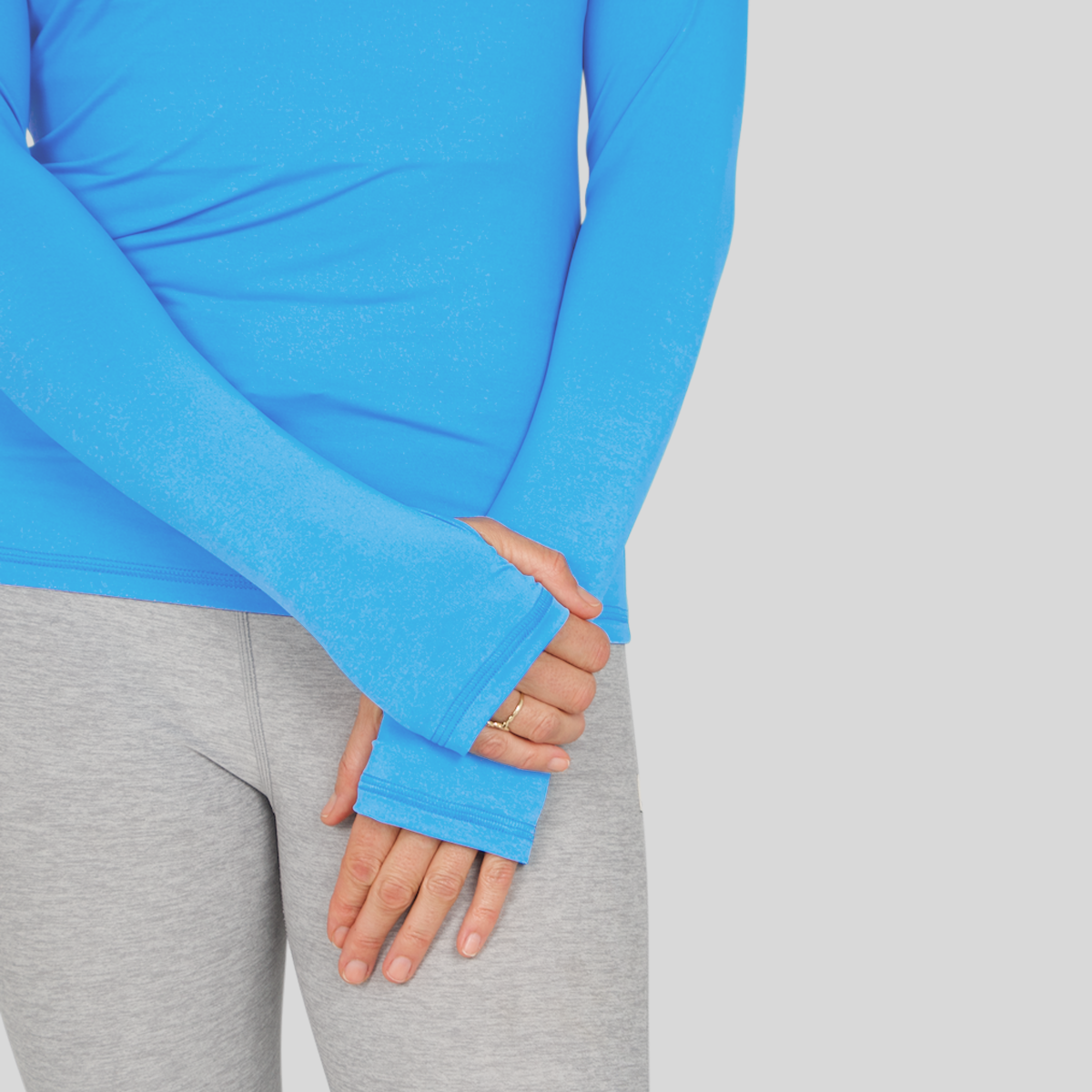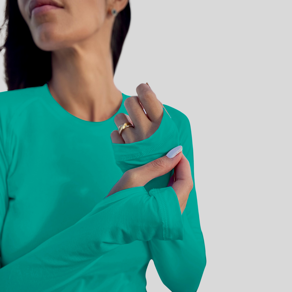 - Long Sleeves + Thumbholes. Extra, adjustable protection for hands and palms.