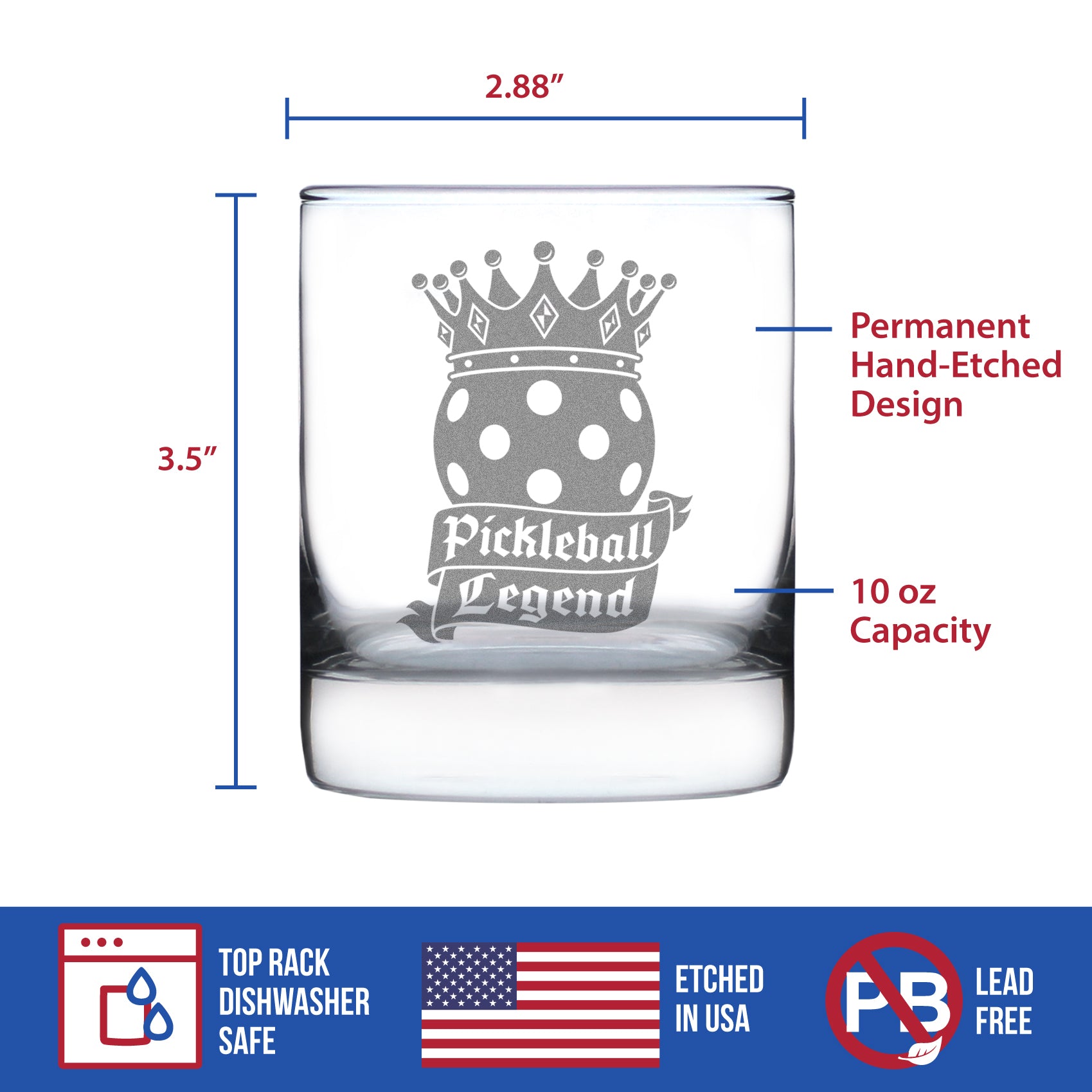 Pickleball Legend Engraved Rocks Glass Gifts for Picklers Weighted Whiskey Glasses - 10.25 oz