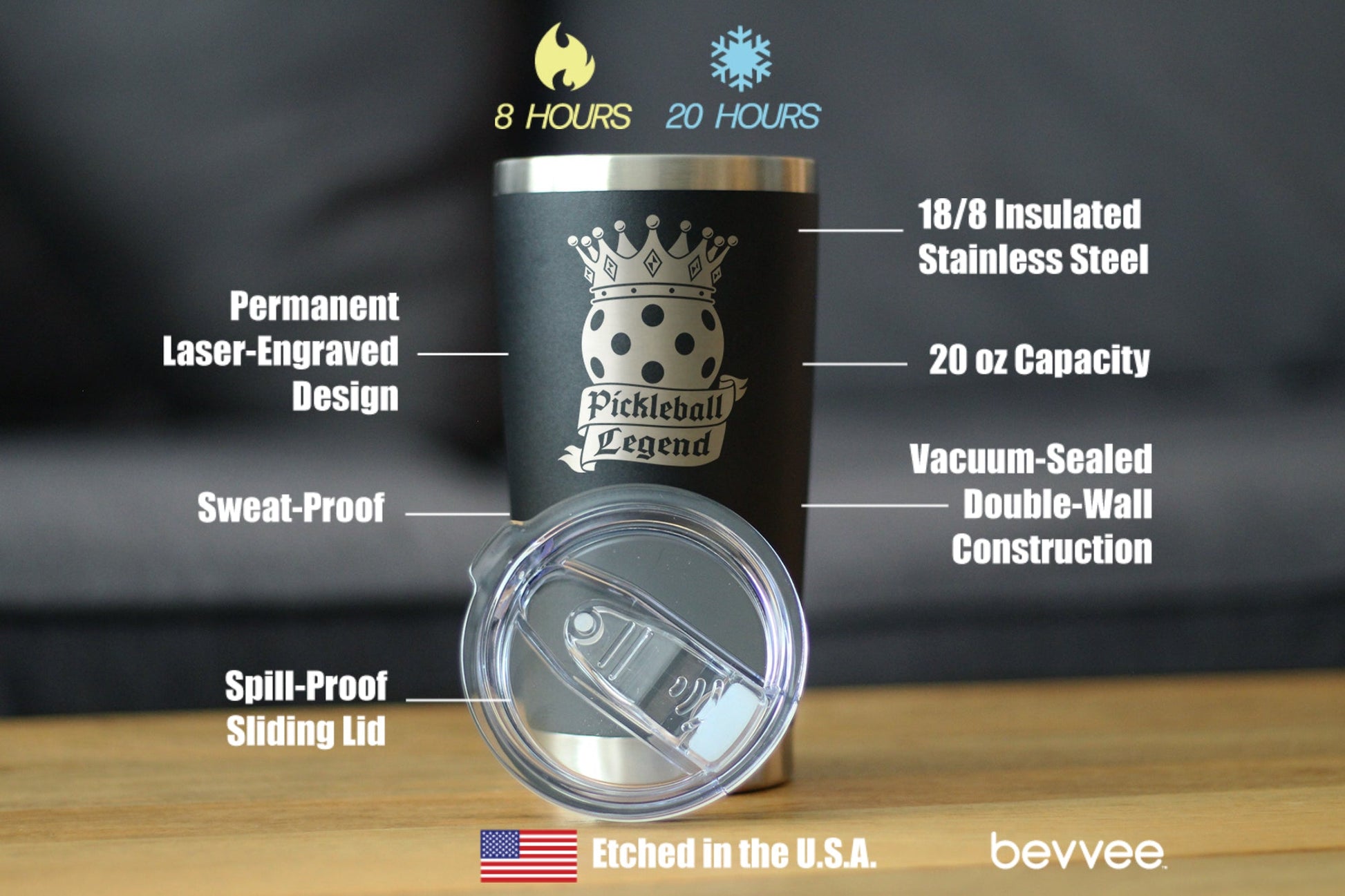 Pickleball Legend Insulated Coffee Tumbler with Sliding Lid Gifts for Picklers 20oz Stainless Steel Tumbler