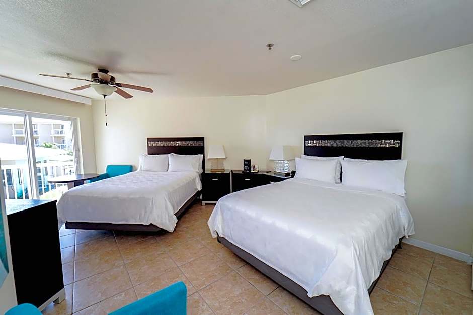 The oceanfront Grand Caymanian Grand Cayman features an extensive tropical garden, a swimming pool, two Pickleball courts. and is adjacent to the only 18-hole golf course on the island. Use of the courts is free. Sign up at the front desk and get paddles and balls provided. Located a 15-minute drive from the Owen Roberts International Airport, and 5 minutes from Seven Mile Beach. Accommodations in one of our suites include flat-screen TVs, seating areas and full kitchens. The large suites also have a separate bedroom, full kitchen, sleeper sofa and a washer/dryer. The bathrooms are private and come with a hairdryer. Units have modern furnishings and island décor with balconies overlooking the beach, gardens or golf course. Enjoy complimentary access to our pickleball courts and fitness room during your stay! Guests can play pickleball or relax on the terrace. The resort also has water sports facilities and snorkeling or diving. A very popular 4-km walking/jogging route is located nearby. The resort is within a 10-minute drive of Turtle Farm. The resort has dining at the Driftwood Bar & Grill, which serves classic Caymanian, American and Cuban cuisine and international dishes. To the East this property overlooks the North Sound Caribbean Sea and to the South it overlooks the signature golf hole, the 11th green, of the North Sound Golf Club.